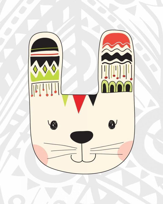 Tribal Bunnies White Modern Wood Framed Art Print with Double Matting by Robinson, Tamara