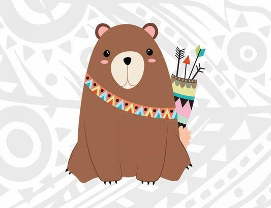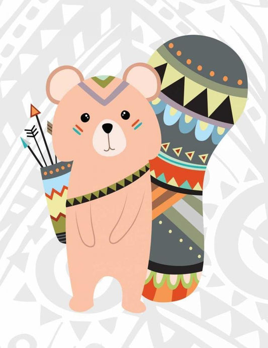 Tribal Bear White Modern Wood Framed Art Print with Double Matting by Robinson, Tamara