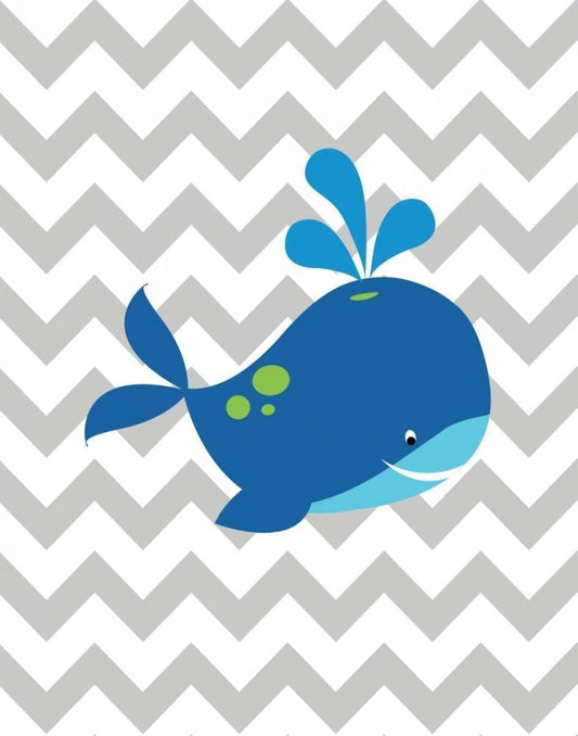 Chevron Whale White Modern Wood Framed Art Print with Double Matting by Robinson, Tamara