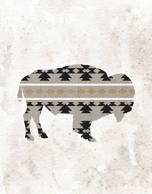 Tribal Buffalo Silhouette White Modern Wood Framed Art Print with Double Matting by Moss, Tara