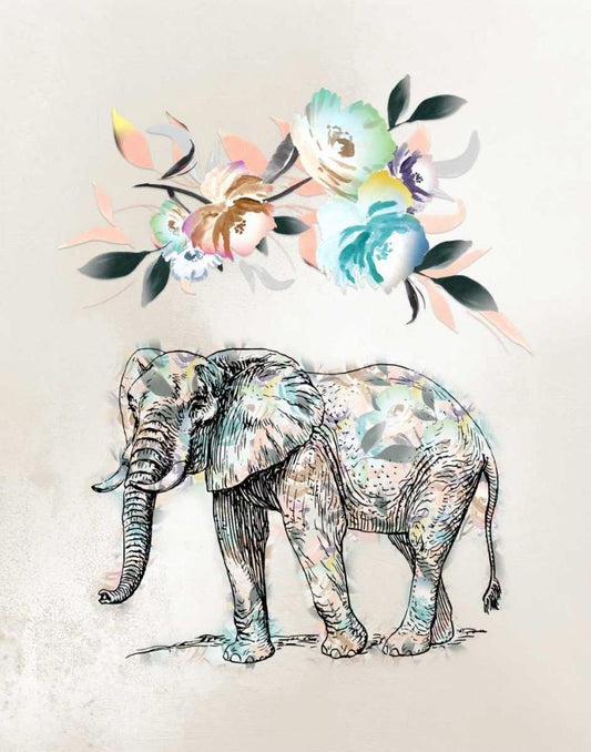 Floral Elephant White Modern Wood Framed Art Print with Double Matting by Moss, Tara