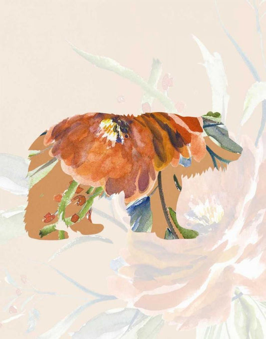 Orange Floral Bear White Modern Wood Framed Art Print with Double Matting by Moss, Tara