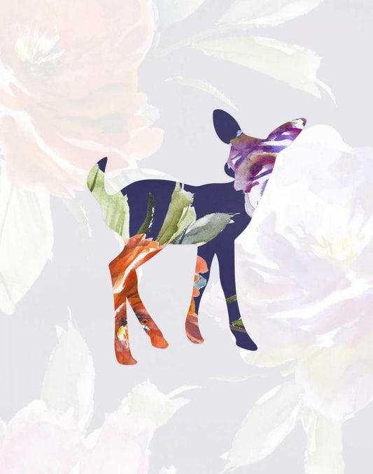 Fawn on Floral White Modern Wood Framed Art Print with Double Matting by Moss, Tara
