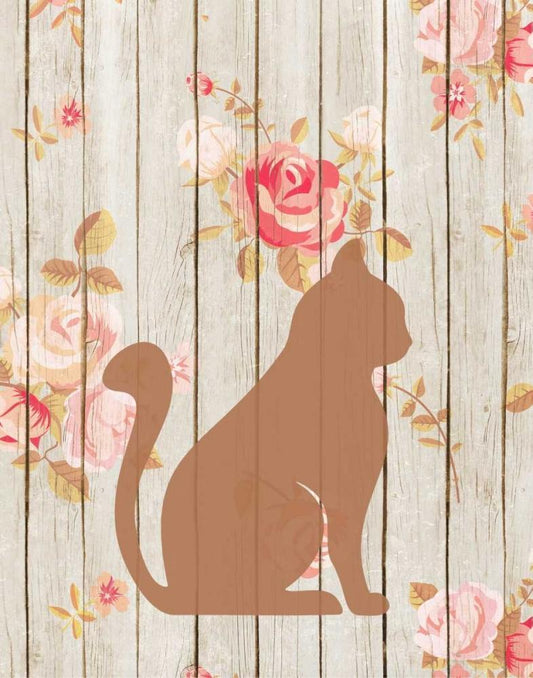 Brown Cat Floral White Modern Wood Framed Art Print with Double Matting by Moss, Tara