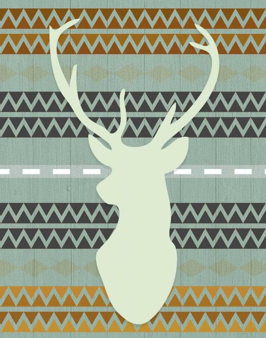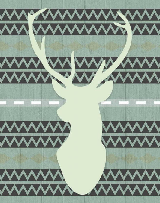 Green Tribal Deer Head White Modern Wood Framed Art Print with Double Matting by Moss, Tara