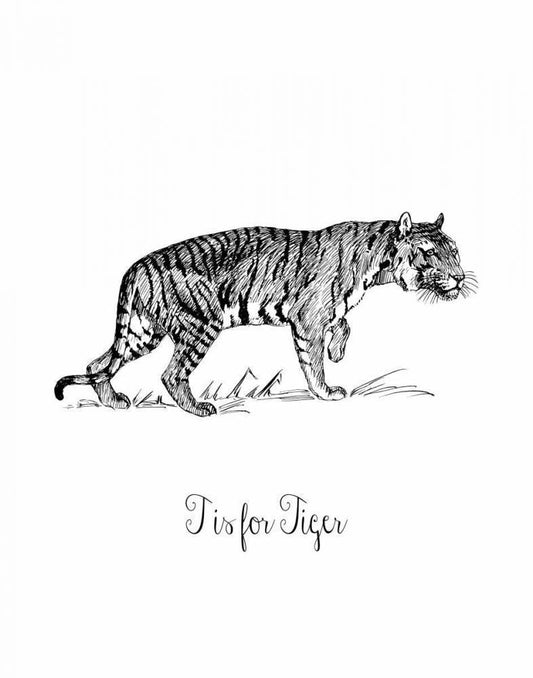T is for Tiger White Modern Wood Framed Art Print with Double Matting by Moss, Tara