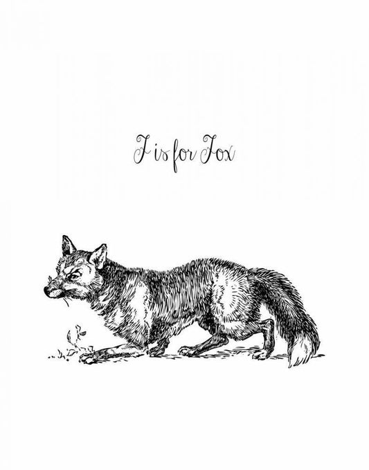 F is for Fox White Modern Wood Framed Art Print with Double Matting by Moss, Tara