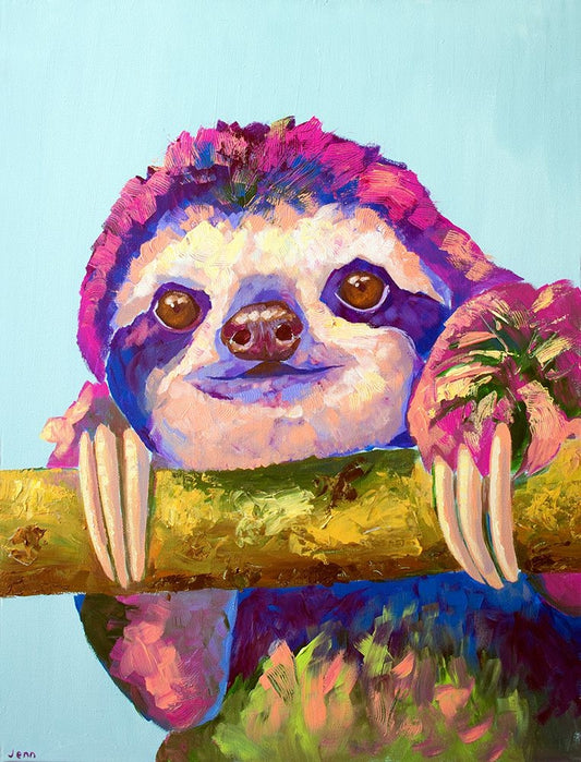 Sloth White Modern Wood Framed Art Print with Double Matting by Seeley, Jenn