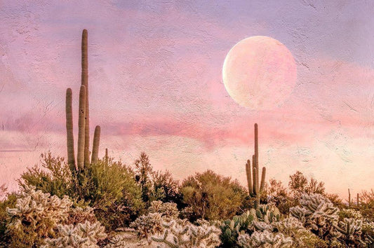 Sunset Moonrise White Modern Wood Framed Art Print with Double Matting by Murdock, Ramona