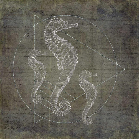 Seahorse Geometric Silver White Modern Wood Framed Art Print with Double Matting by Murdock, Ramona