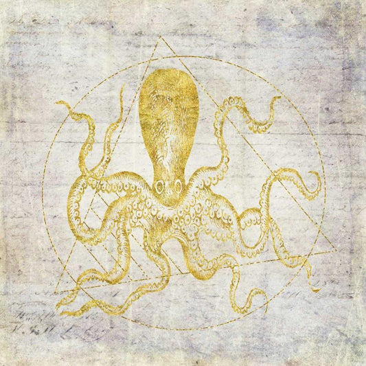 Octopus Geometric Gold White Modern Wood Framed Art Print with Double Matting by Murdock, Ramona
