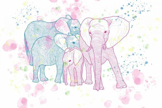 Happy Elephant Family White Modern Wood Framed Art Print with Double Matting by Murdock, Ramona