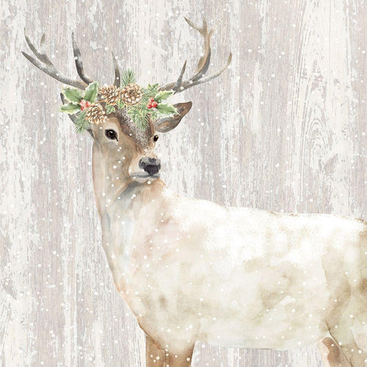 Holiday Deer White Modern Wood Framed Art Print with Double Matting by P.S. Art