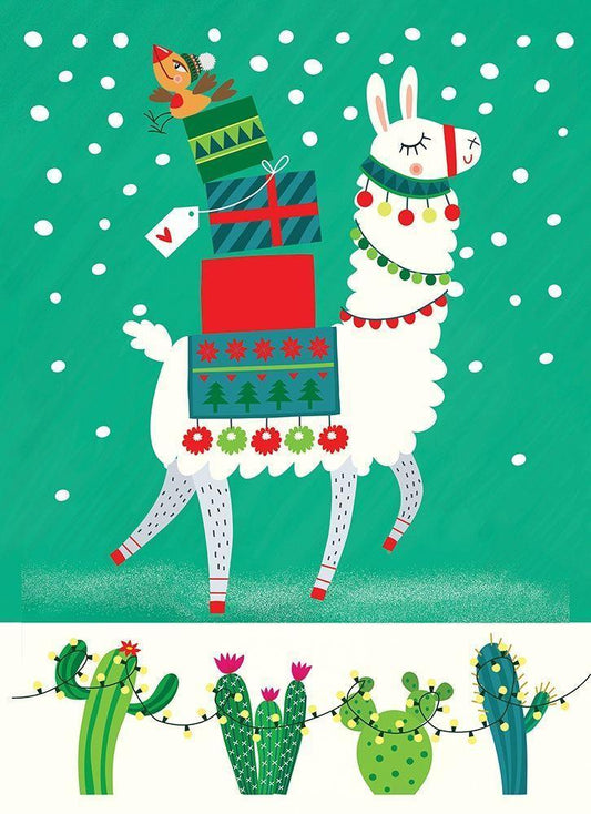 Llama Christmas II White Modern Wood Framed Art Print with Double Matting by P.S. Art