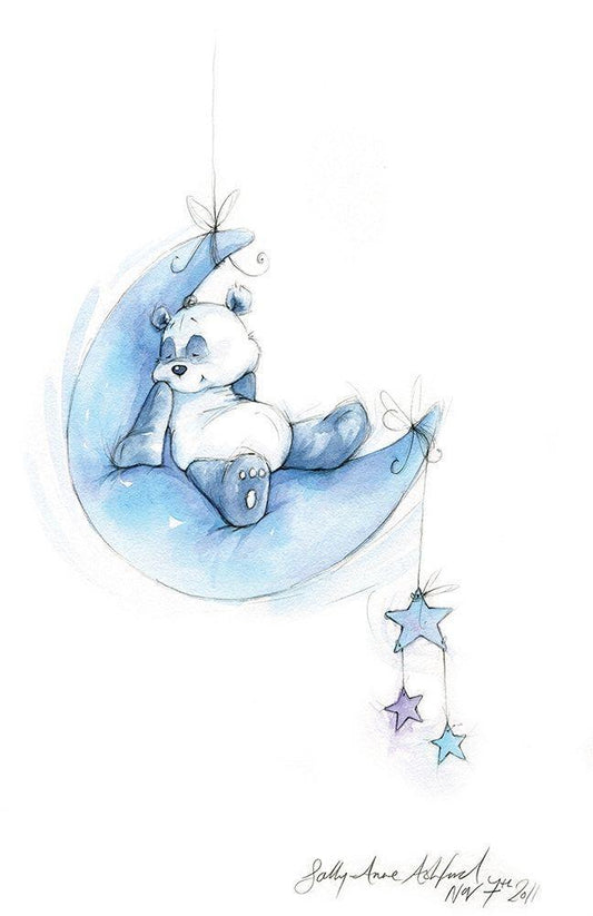 Baby Panda White Modern Wood Framed Art Print with Double Matting by P.S. Art