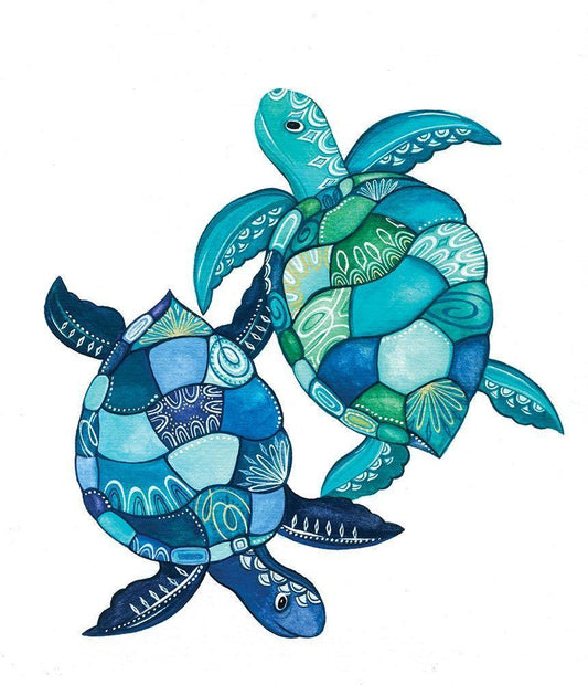 Sea Turtles White Modern Wood Framed Art Print with Double Matting by P.S. Art