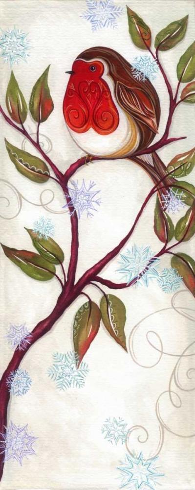 Branch Birds III White Modern Wood Framed Art Print with Double Matting by P.S. Art Studios