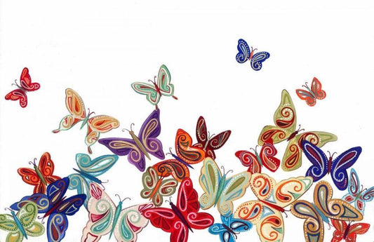 Butterflies White Modern Wood Framed Art Print with Double Matting by P.S. Art Studios