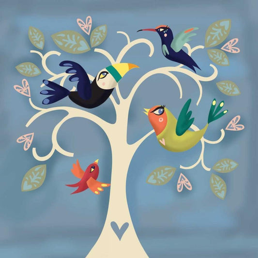 Birds in a Tree White Modern Wood Framed Art Print with Double Matting by P.S. Art Studios
