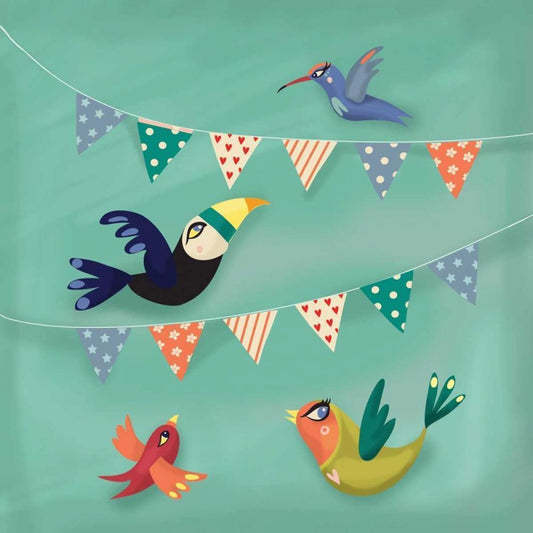 Birds and Flags White Modern Wood Framed Art Print with Double Matting by P.S. Art Studios