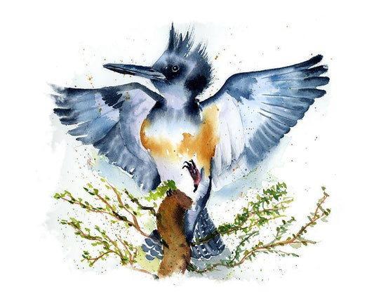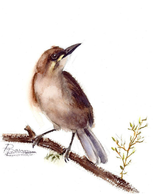 Purple Bird White Modern Wood Framed Art Print with Double Matting by Shefranov, Olga