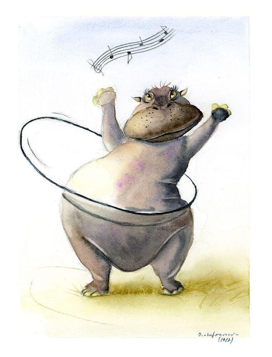 Hippo White Modern Wood Framed Art Print with Double Matting by Shefranov, Olga