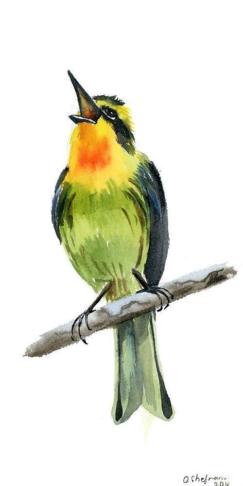 Tropical Bird IV White Modern Wood Framed Art Print with Double Matting by Shefranov, Olga