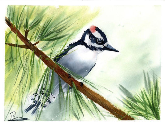 Woodpecker White Modern Wood Framed Art Print with Double Matting by Shefranov, Olga