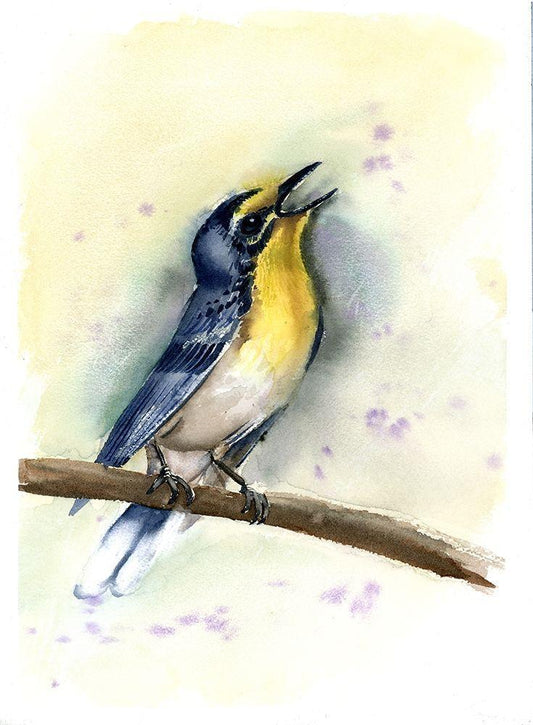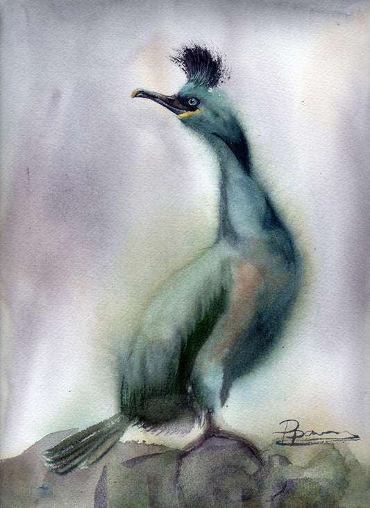 Bird on Rock White Modern Wood Framed Art Print with Double Matting by Shefranov, Olga