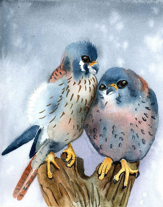 Owls White Modern Wood Framed Art Print with Double Matting by Shefranov, Olga