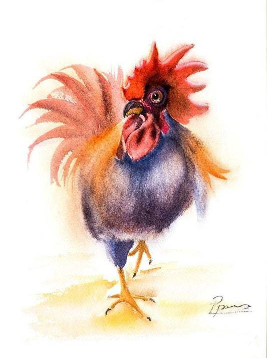 Rooster White Modern Wood Framed Art Print with Double Matting by Shefranov, Olga