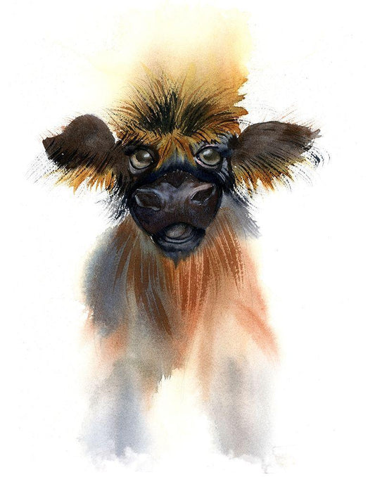 Calf White Modern Wood Framed Art Print with Double Matting by Shefranov, Olga