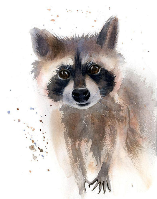 Raccoon White Modern Wood Framed Art Print with Double Matting by Shefranov, Olga