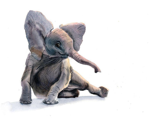 Elephant III White Modern Wood Framed Art Print with Double Matting by Shefranov, Olga