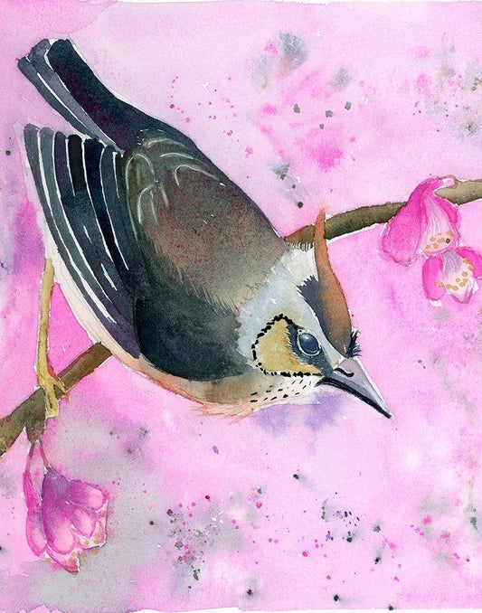 Pretty Bird White Modern Wood Framed Art Print with Double Matting by Shefranov, Olga
