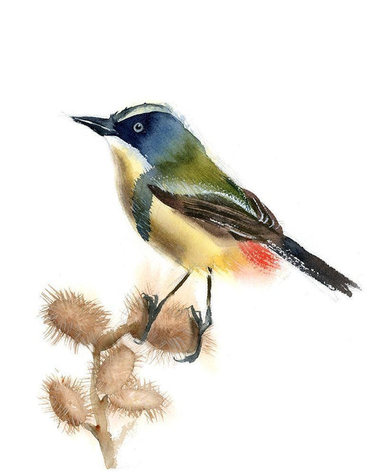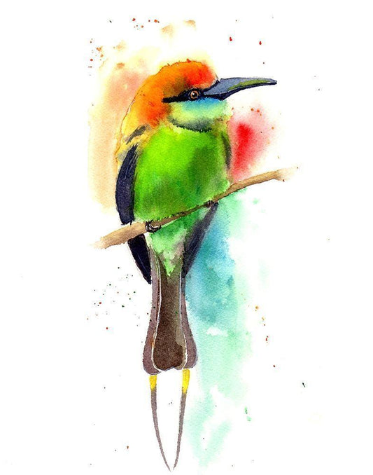 Green Bird White Modern Wood Framed Art Print with Double Matting by Shefranov, Olga