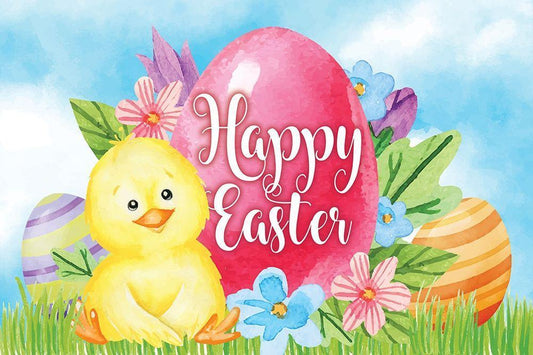 Happy Easter White Modern Wood Framed Art Print with Double Matting by ND Art