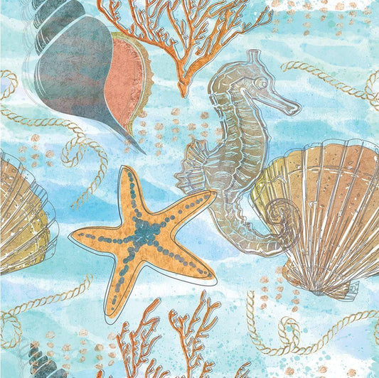 Coastal Shores Pattern I White Modern Wood Framed Art Print with Double Matting by ND Art