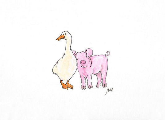 Duck and Pig White Modern Wood Framed Art Print with Double Matting by Strong, Molly Susan