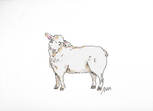 Sheep White Modern Wood Framed Art Print with Double Matting by Strong, Molly Susan