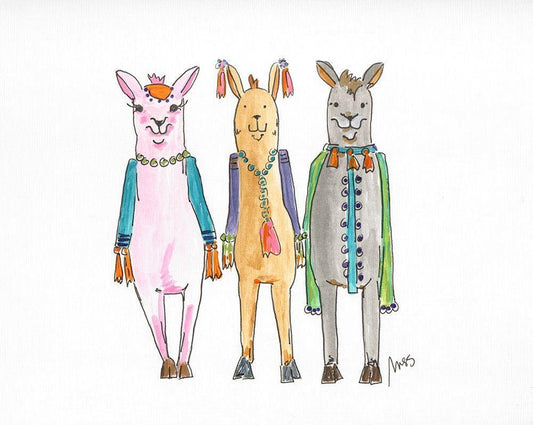 Llama Three White Modern Wood Framed Art Print with Double Matting by Strong, Molly Susan