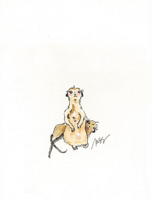 Meerkats White Modern Wood Framed Art Print with Double Matting by Strong, Molly Susan