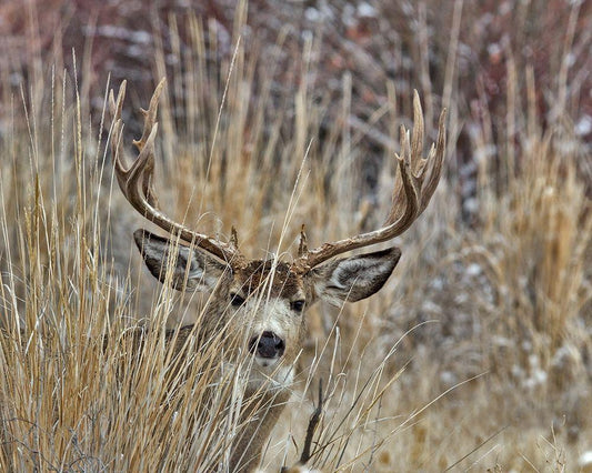 Mule Deer Buck - Steens Mountain White Modern Wood Framed Art Print with Double Matting by McFerrin, Larry
