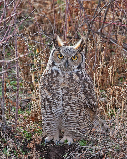Great Horned Owl White Modern Wood Framed Art Print with Double Matting by McFerrin, Larry