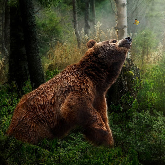 Grizzly Summit White Modern Wood Framed Art Print with Double Matting by Parker, Kelley