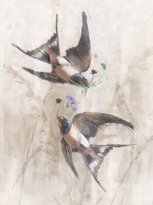 Playful Swallows II White Modern Wood Framed Art Print with Double Matting by Blue, Nina