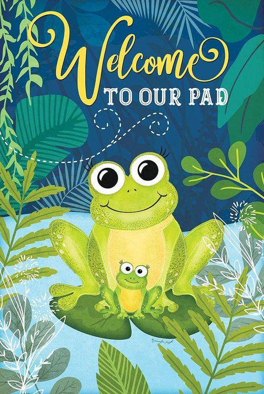 Welcome Frog White Modern Wood Framed Art Print with Double Matting by Pugh, Jennifer