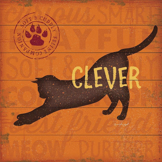 Clever Cat White Modern Wood Framed Art Print with Double Matting by Pugh, Jennifer