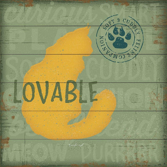 Loveable Cat White Modern Wood Framed Art Print with Double Matting by Pugh, Jennifer