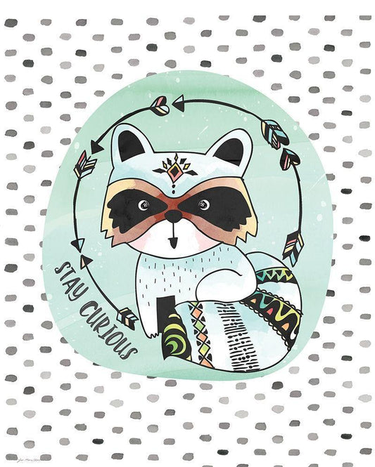 Curious Raccoon White Modern Wood Framed Art Print with Double Matting by Moulton, Jo